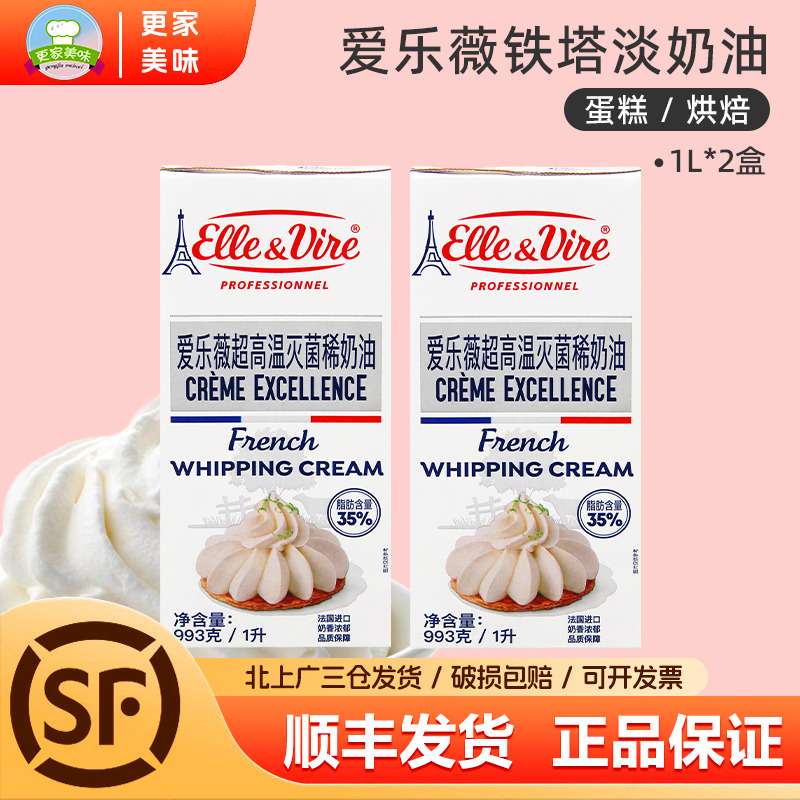 爱乐薇铁塔淡奶油1L*2盒进口蛋糕裱花商用动物性鲜稀奶油烘焙原料