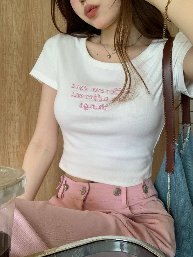 2023年新款夏季短袖t恤女露脐高腰显瘦短款上衣小个子体恤时尚潮