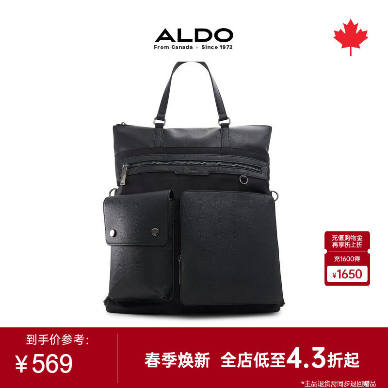 ALDO男生背包通勤公文黑色多袋立体设计感时尚大容量BHNS24B20
