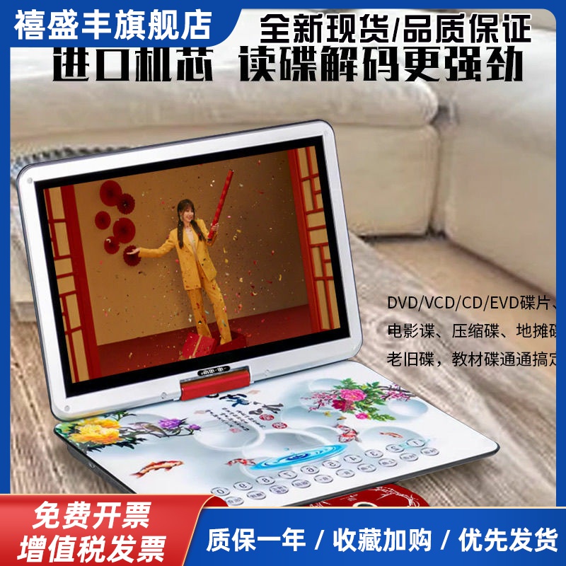 高清21寸移动DVD影碟播放机便携式evd儿童带小电视高清便宜23翻盖折叠读碟机25