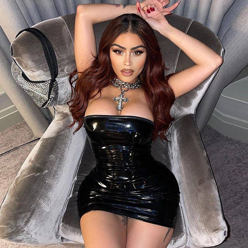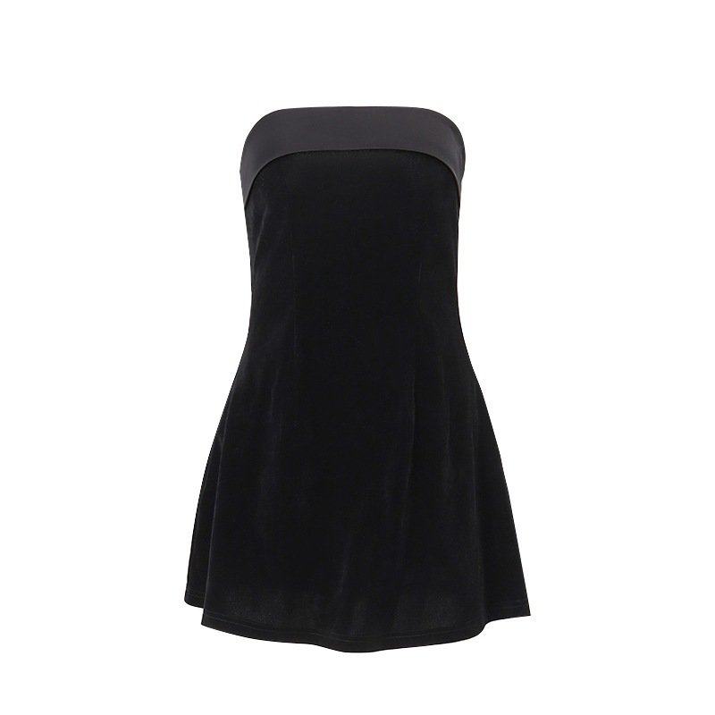 欧美风2023春夏新款时尚暗黑风裹胸短裙紧身性感一字领抹胸连衣裙