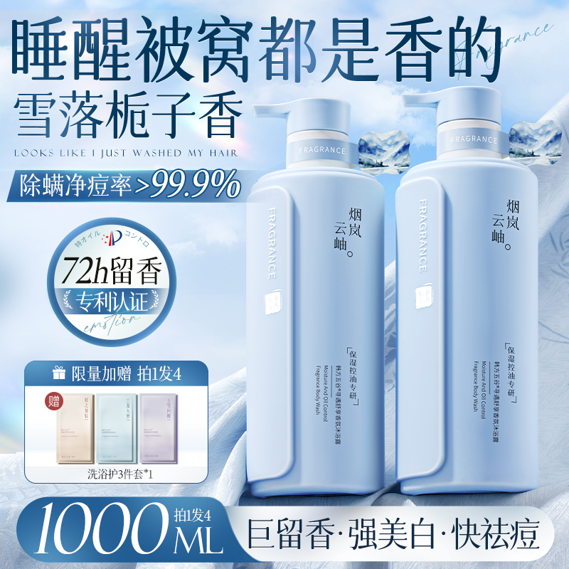 山茶沐浴露持久留香72小时香水乳液保湿控油净痘焕白男女官方正品