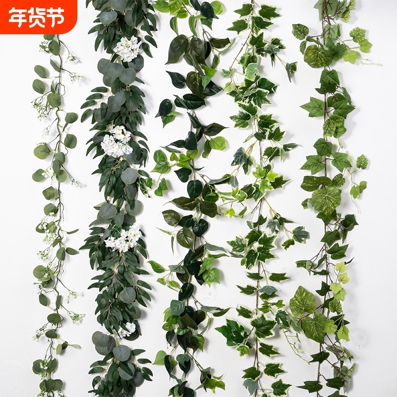 仿真植物绿叶装饰藤条假花藤蔓室内橱窗造景绿植管道缠绕遮挡树叶