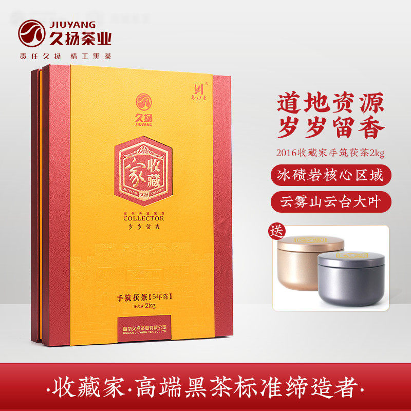 湖南安化黑茶正宗久扬收藏家陈年手筑茯砖2kg金花黑茶老茶礼盒