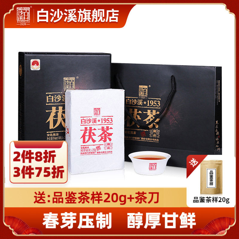 安化黑茶正宗白沙溪金花茯砖茶湖南正品1953御品茯茶318g礼盒装