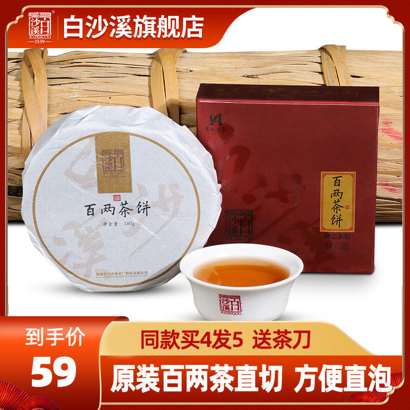 湖南安化黑茶正宗白沙溪正品茶叶花卷茶便携装2023年百两茶饼180g