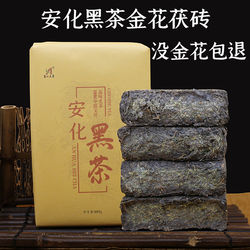 黑茶湖南安化黑茶金花手筑茯砖茶 正宗原叶安华伏砖茶1000g茶叶