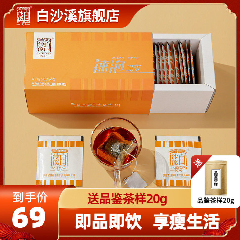 湖南安化黑茶正宗白沙溪正品速泡黑茶速溶冲饮小袋装30包冷泡茶粉