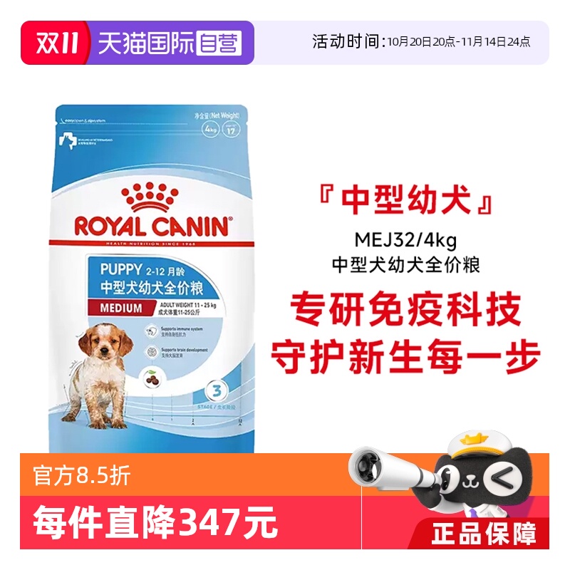【自营】皇家狗粮中型犬幼犬全价粮MEJ32/4KG哈士奇柴犬法斗通用