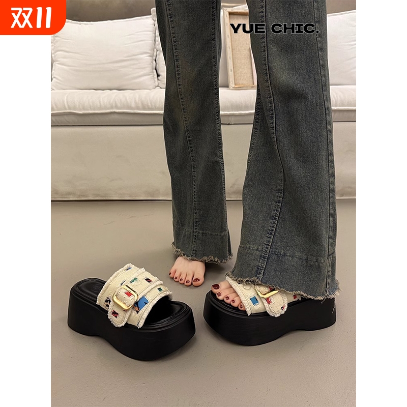 超高跟凉拖鞋女夏外穿2025新款高级感配裙子法式绝美厚底坡跟拖鞋
