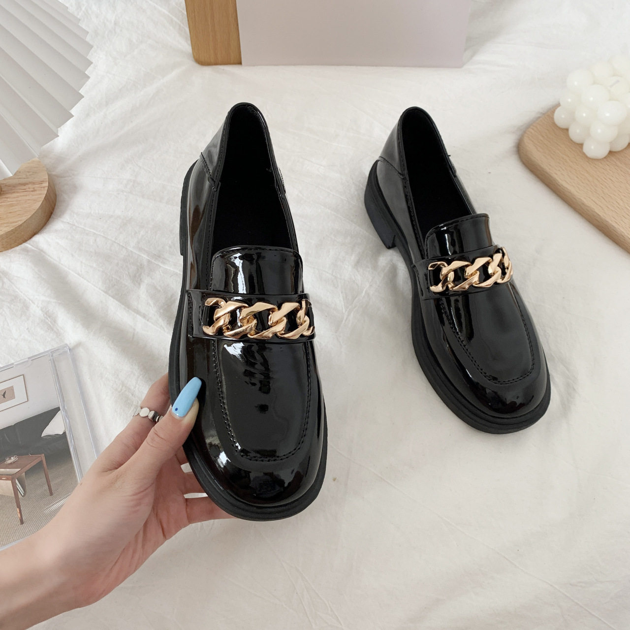 - 漆皮平跟单鞋