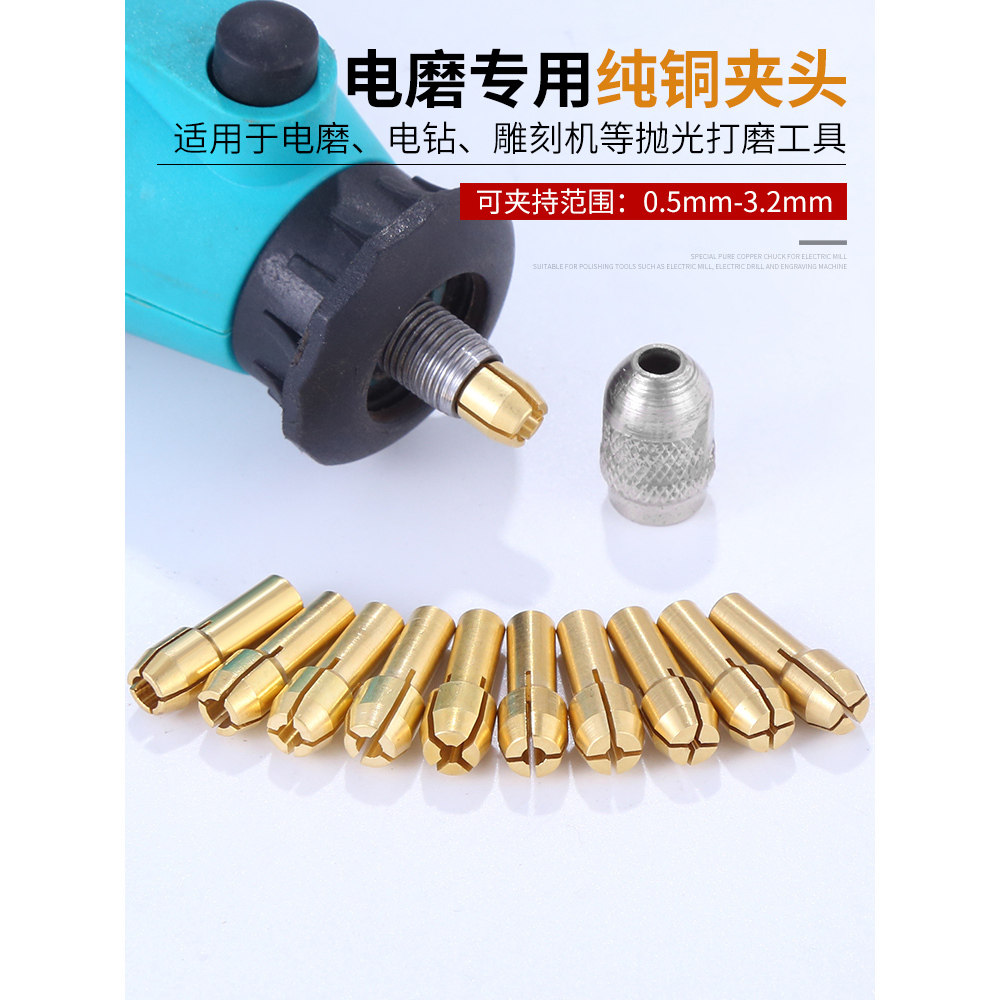 小电磨电钻配件微型黄铜芯小夹头三爪钻头夹心迷你打磨机螺帽锁帽