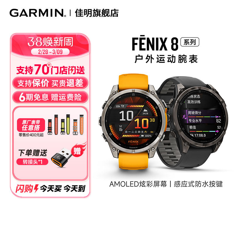 【自营】【新品】Garmin佳明Fenix8户外运动手表太阳能双频多星LED灯跑步游泳潜水骑行健身越野爬山地图导航