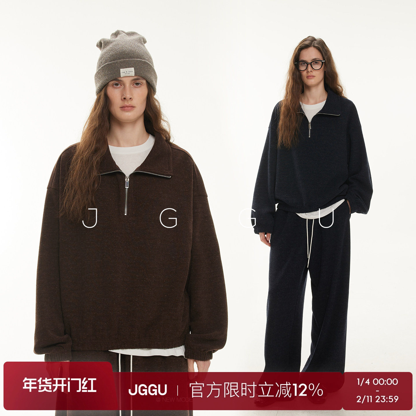 晶咕黑标JGGU【时髦遛弯 】休闲懒人翻领拉链卫衣外套阔腿裤套装