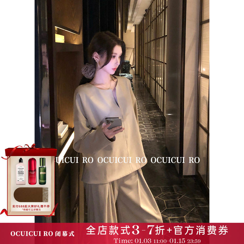 CUICUI崔崔【秋风微凉】极简松弛感老钱风圆领长袖上衣休闲裤套装