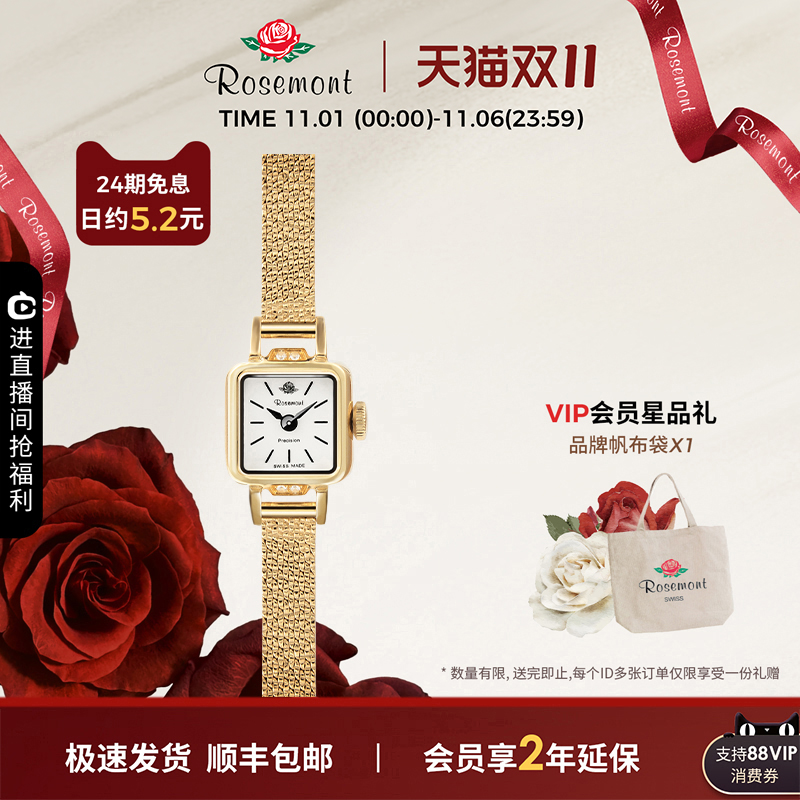 Rosemont复古小巧方形表金属表带石英表小表盘女士气质简约手表女