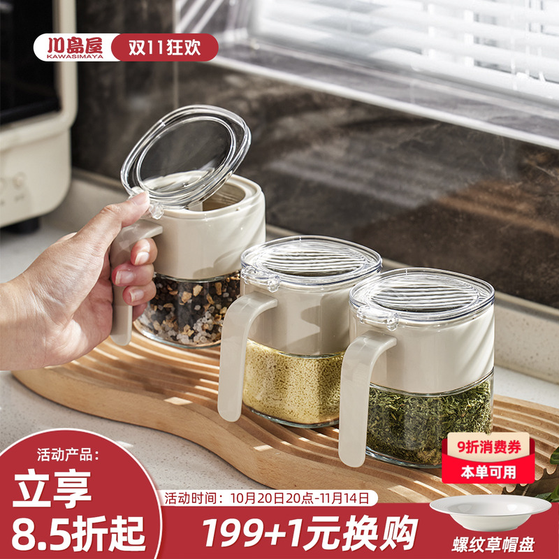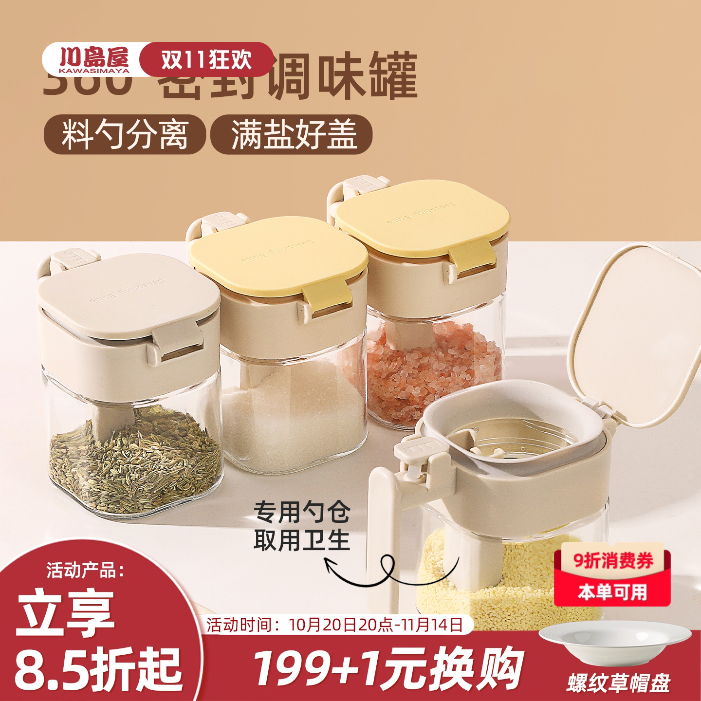 川岛屋勺仓分离调料罐密封防潮调料盒厨房家用糖盐罐玻璃调味瓶罐