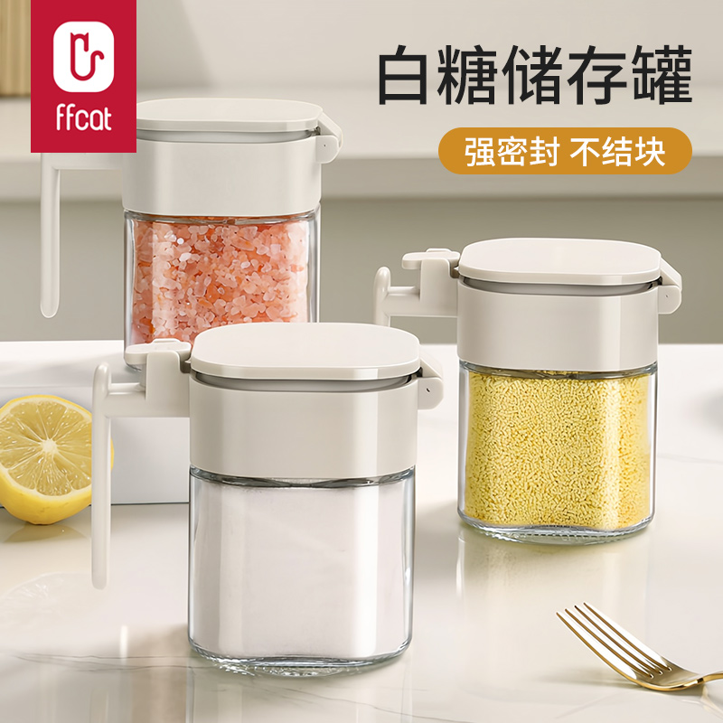御仕家磁吸勺调料盒密封防潮调味瓶罐厨房玻璃白糖盐罐家用收纳盒
