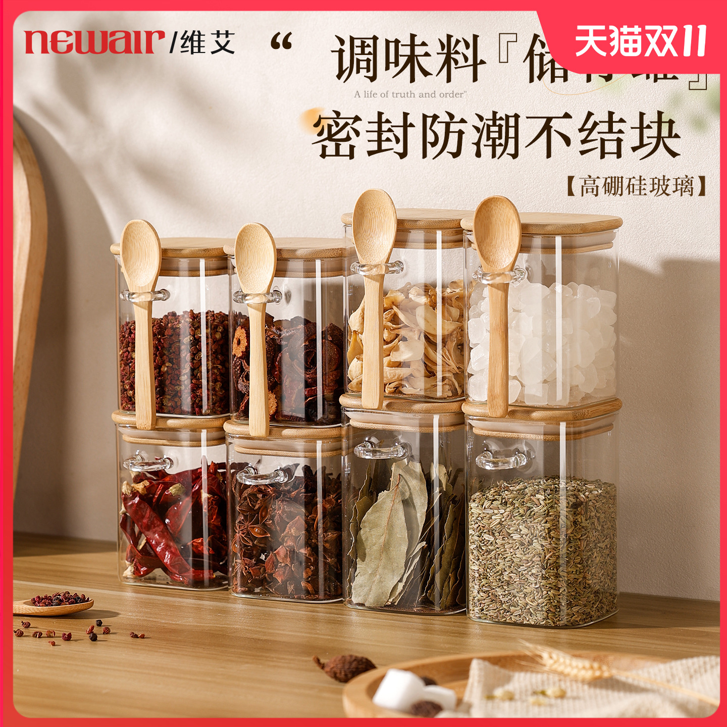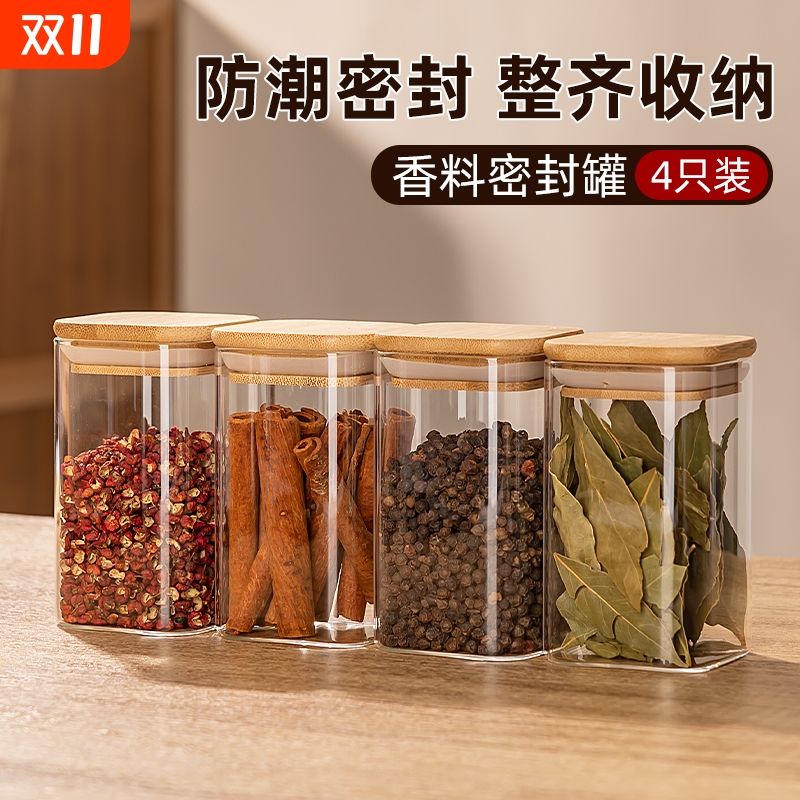 香料收纳盒调料罐分装瓶高硼硅玻璃密封储物花椒调味瓶罐厨房家用