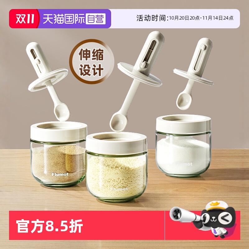 【自营】Flumot调料瓶罐调味分装收纳盒盐罐定量厨房玻璃密封防潮