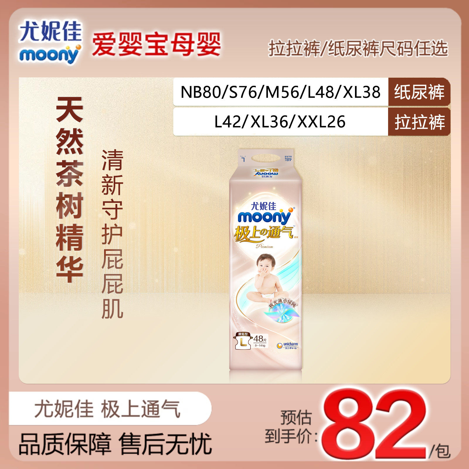 【百亿补贴】尤妮佳moony纸尿裤拉拉裤尿不湿透气干爽NB/S/M/L/XL