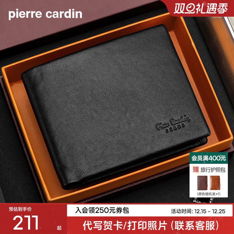 【真皮】皮尔卡丹男士钱包真皮短款送男友老公礼物牛皮驾驶证皮夹