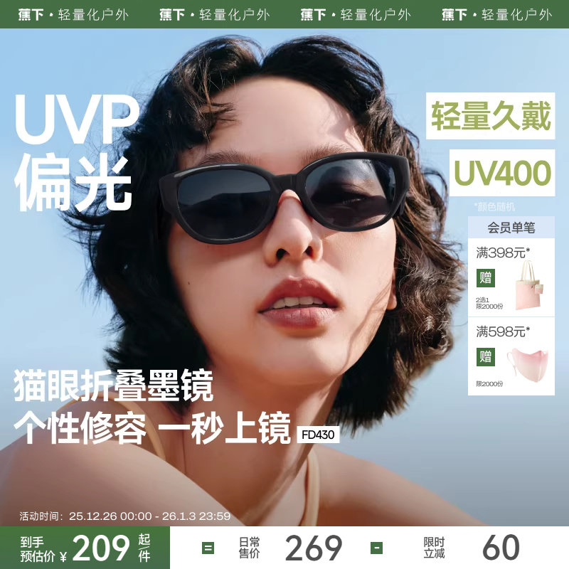 蕉下猫眼墨镜女款FD430复古高级感偏光椭圆焦下防紫外线太阳眼镜