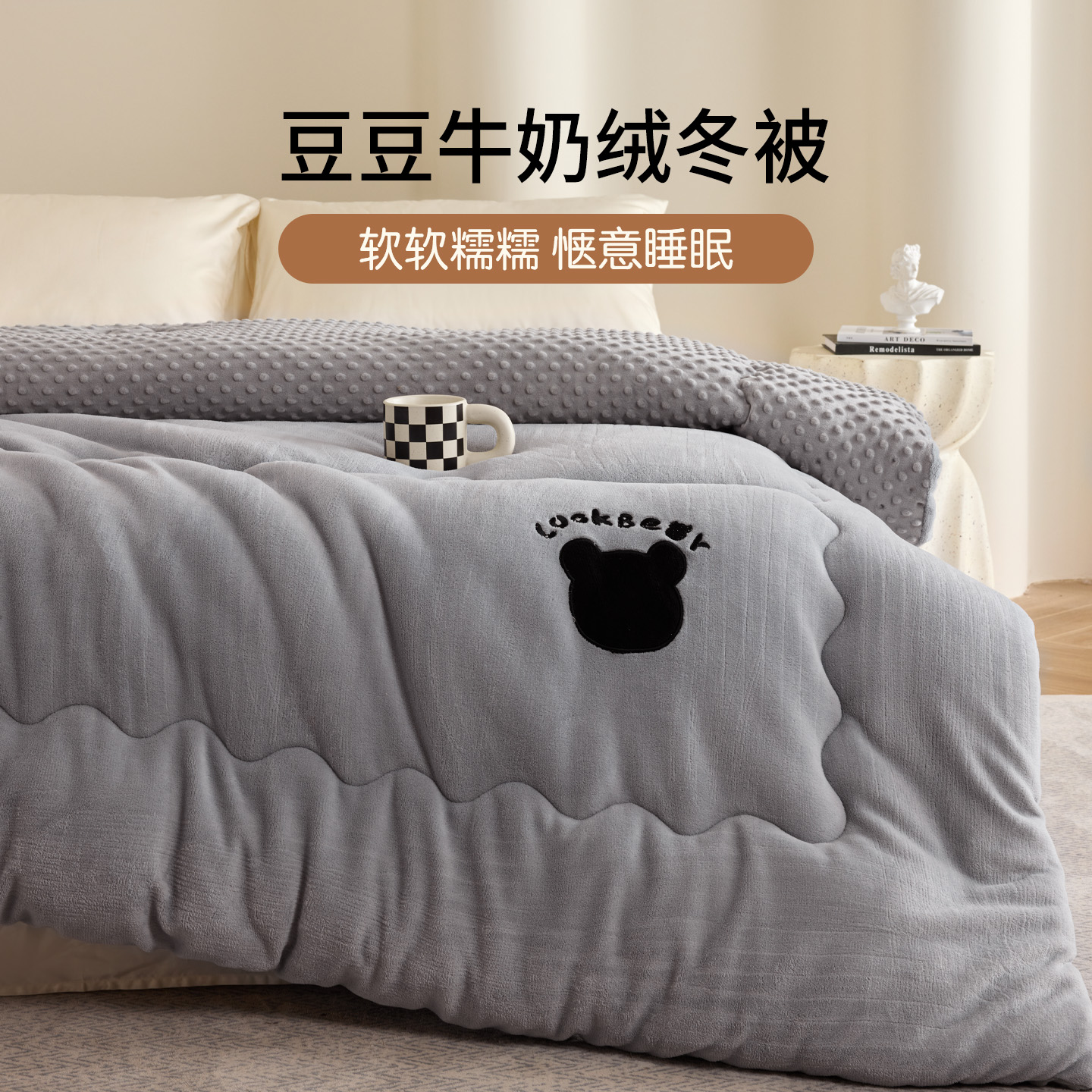 如奕A类全棉牛奶绒豆豆被大豆冬被加厚保暖单人学生春秋被子被芯