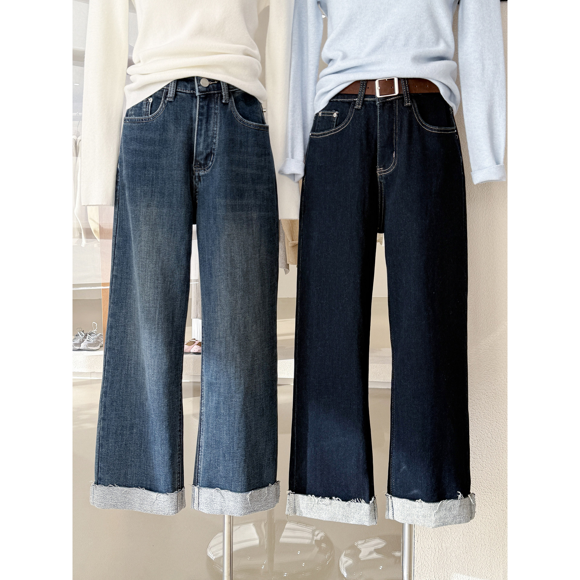 卷边直筒牛仔裤女2025新款秋季裤子九分裤高腰休闲翻边窄版阔腿裤