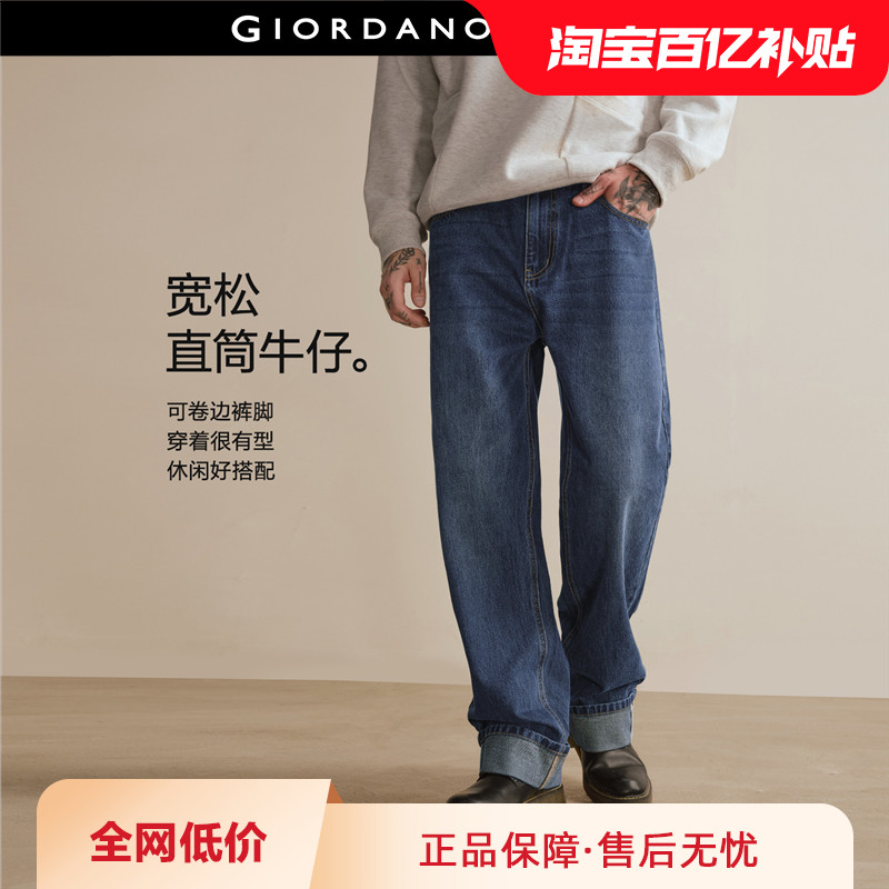 设计师款佐丹奴猫须牛仔裤男装可卷边复古水洗牛仔直筒裤18115802
