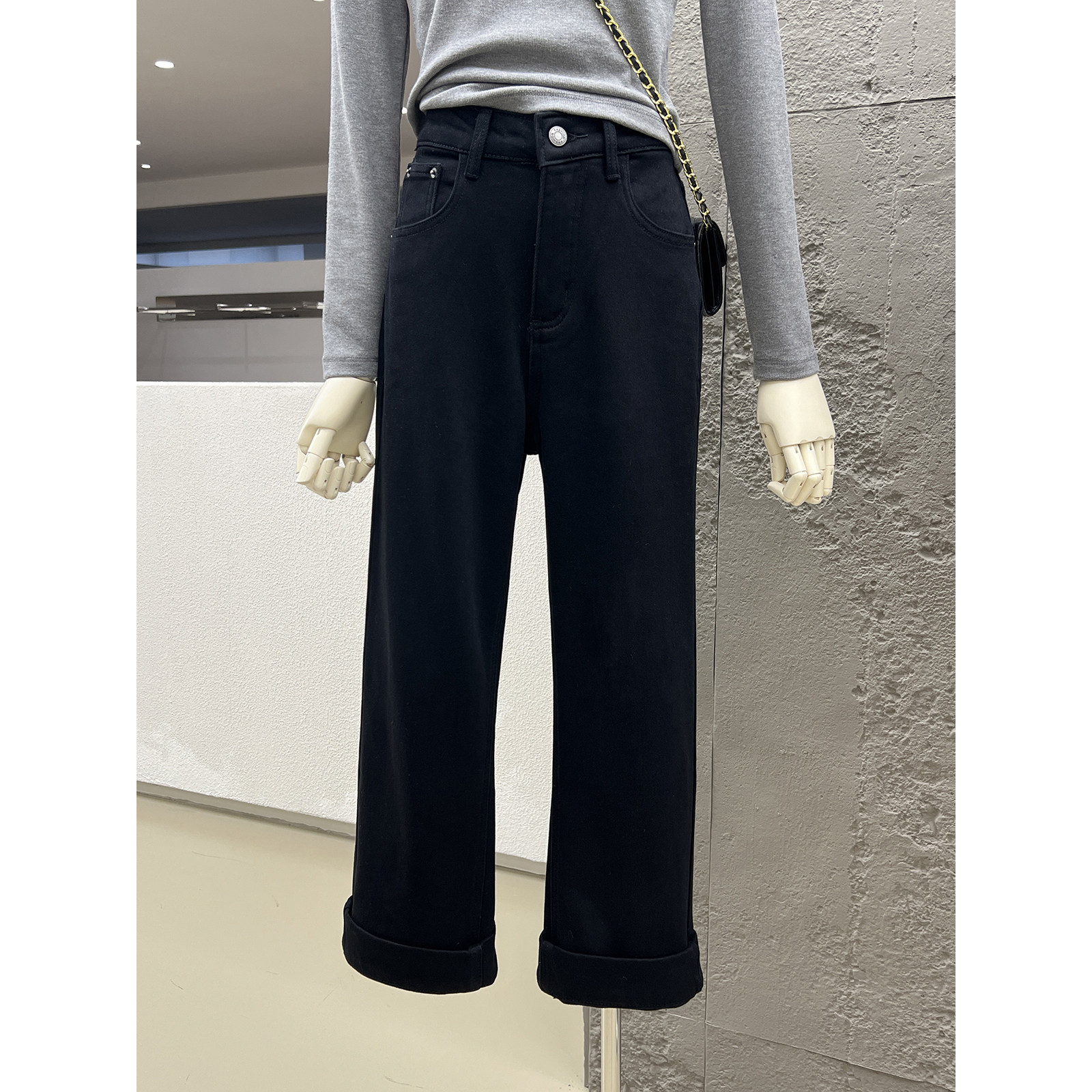 播商场同款卷边直筒牛仔裤女25春秋新款宽松黑色长裤BDS1KD1522