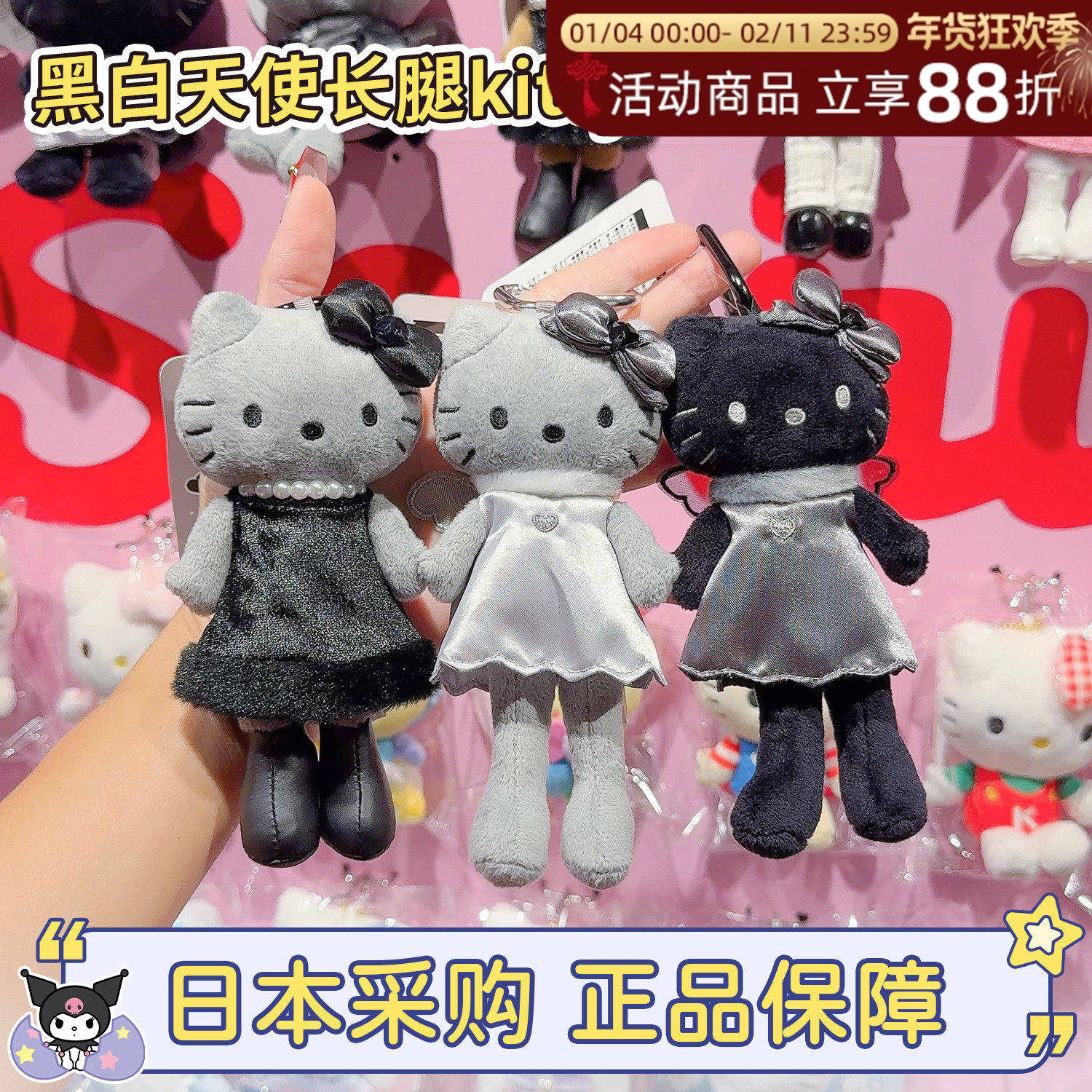 现货日本三丽鸥nic黑白天使恶魔hellokitty长腿黑皮kitty毛绒挂件