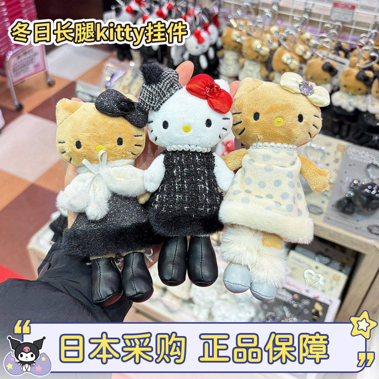 现货日本三丽鸥冬日长腿黑皮hellokitty小香风披肩洛丽塔包包挂件