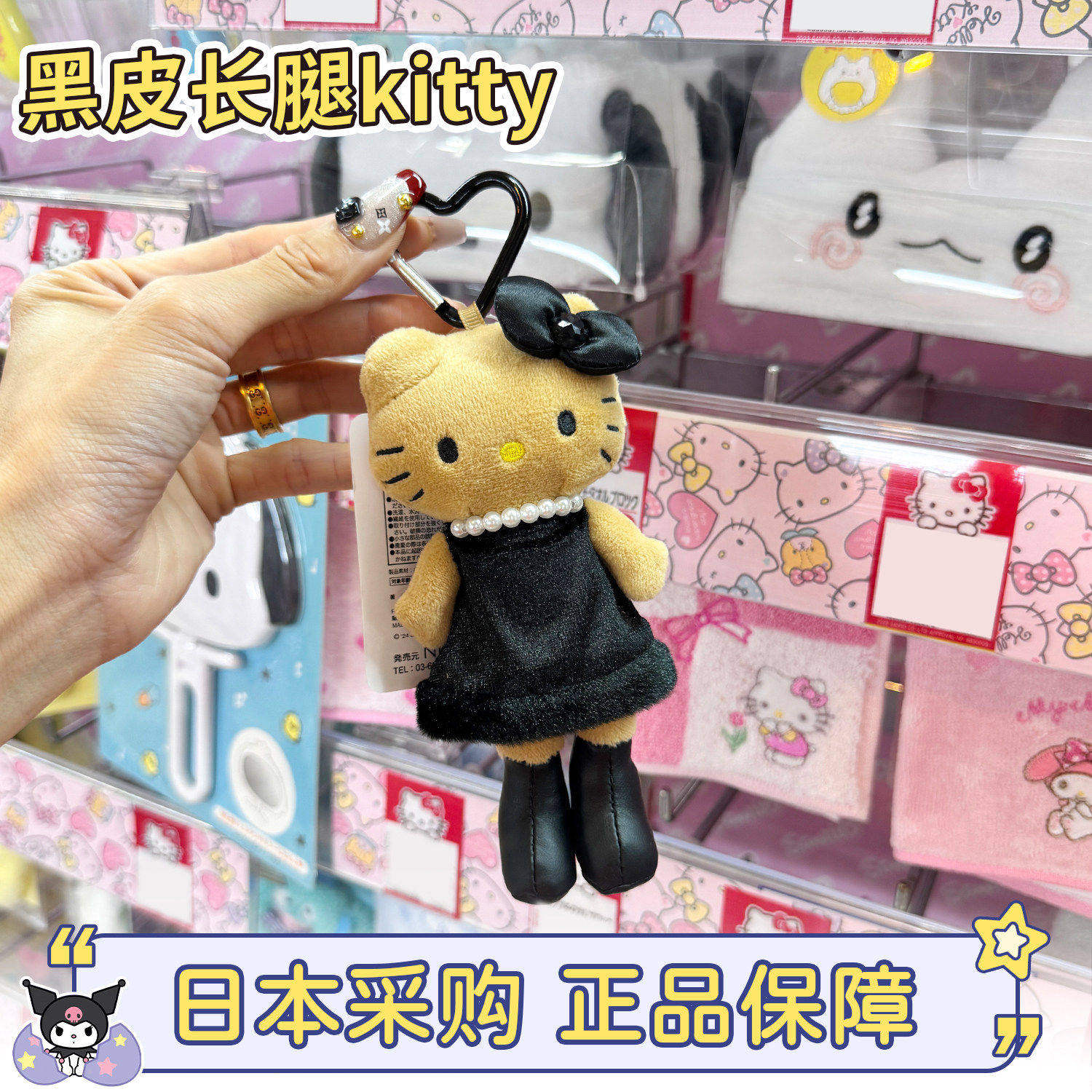 正品现货日本三丽鸥黑裙珍珠黑皮长腿hellokitty猫挂件钥匙扣豹纹