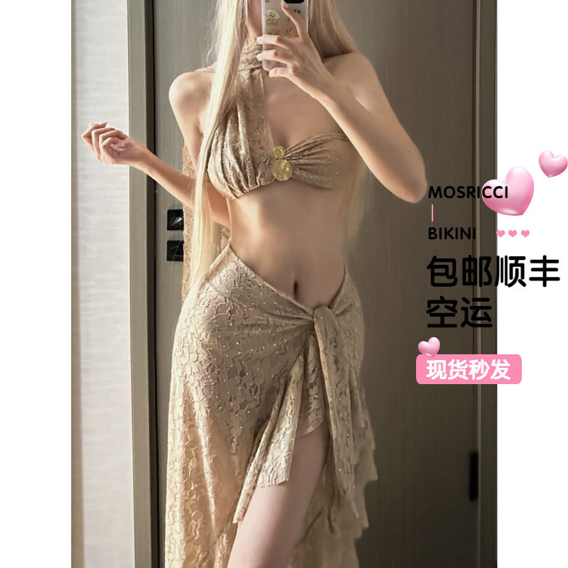 INS同款分体泳衣小众设计海岛度假性感蕾丝分体BIKINI温泉三件套