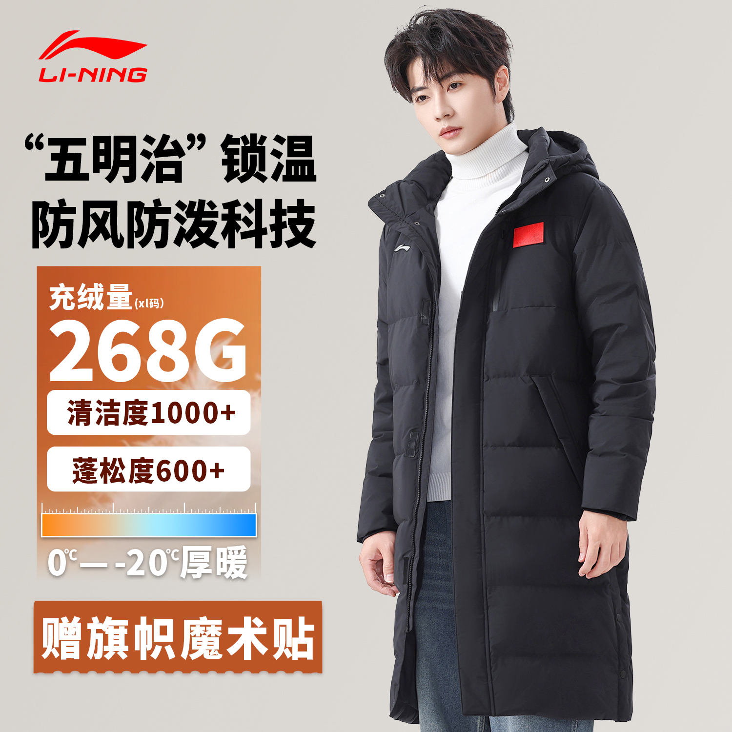 李宁国旗款羽绒服男女同款2025冬新长款过膝加厚保暖鸭绒连帽外套