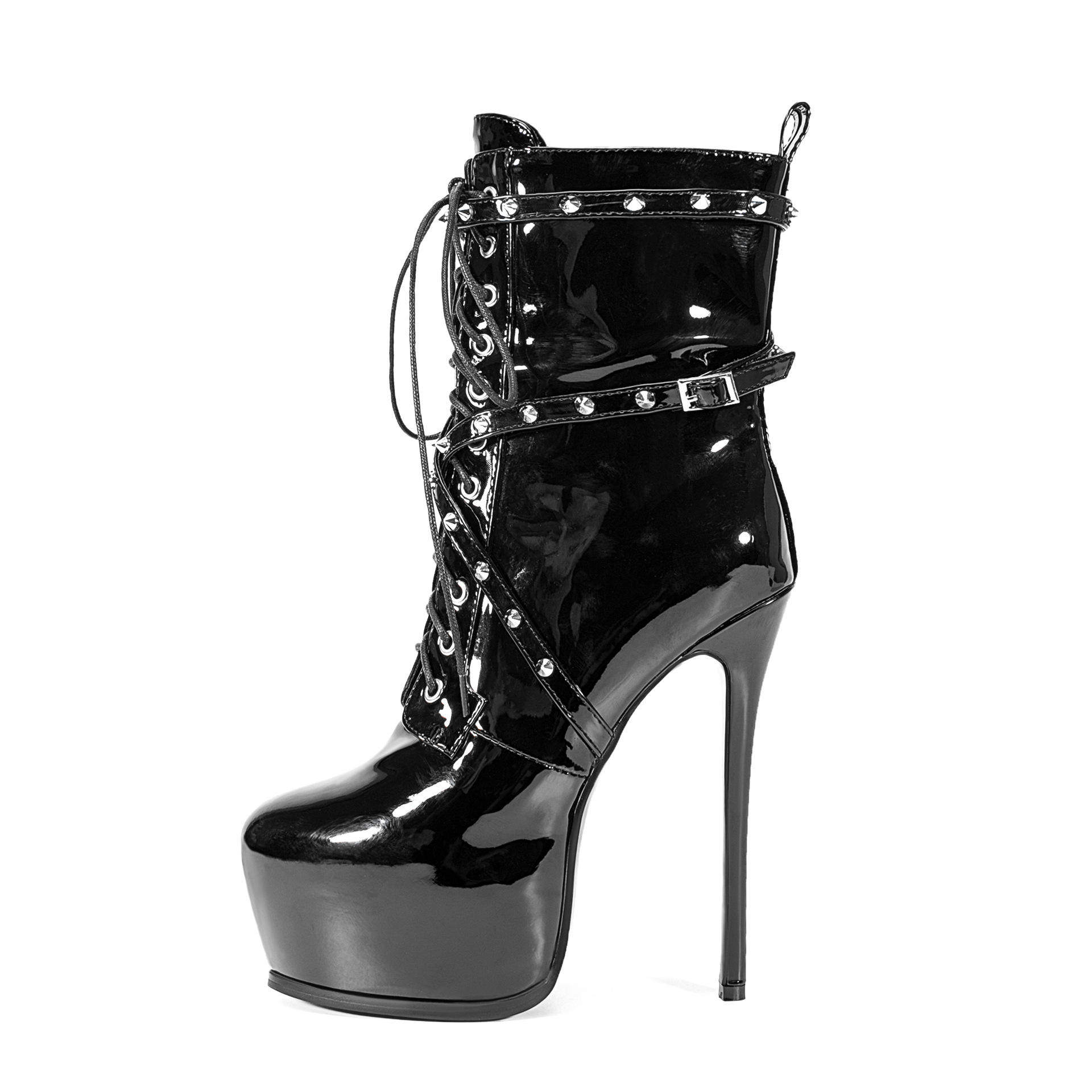 - 漆皮粗跟靴