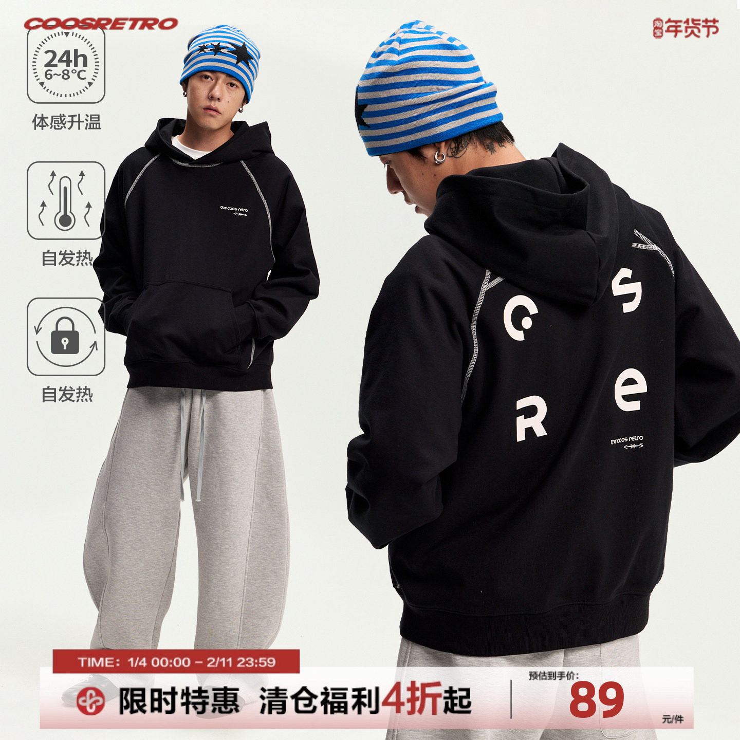 CoosRetro 春季恒温亲肤暖皮插肩印花上衣宽松连帽套头潮牌卫衣男