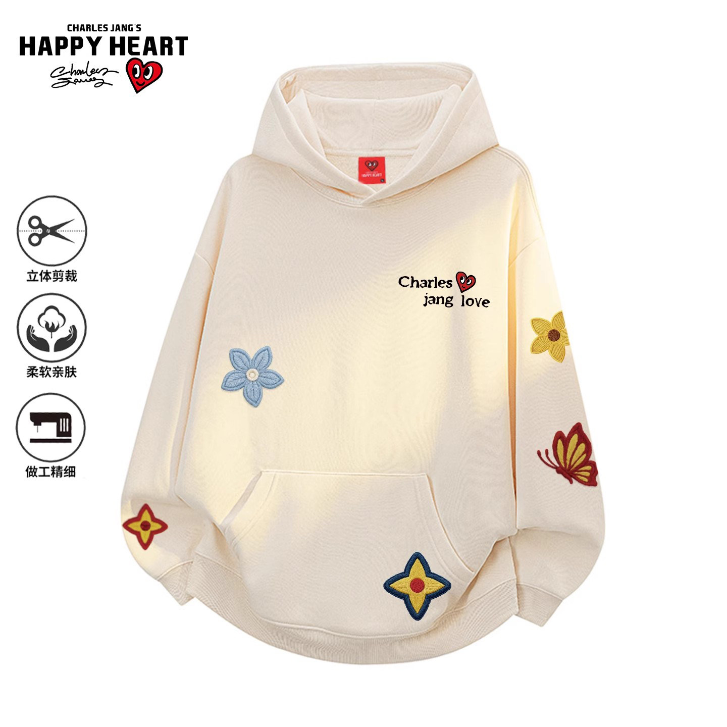 查尔斯桃心美式卫衣男连帽冬季新款花卉蝴蝶印花潮牌套头情侣上衣