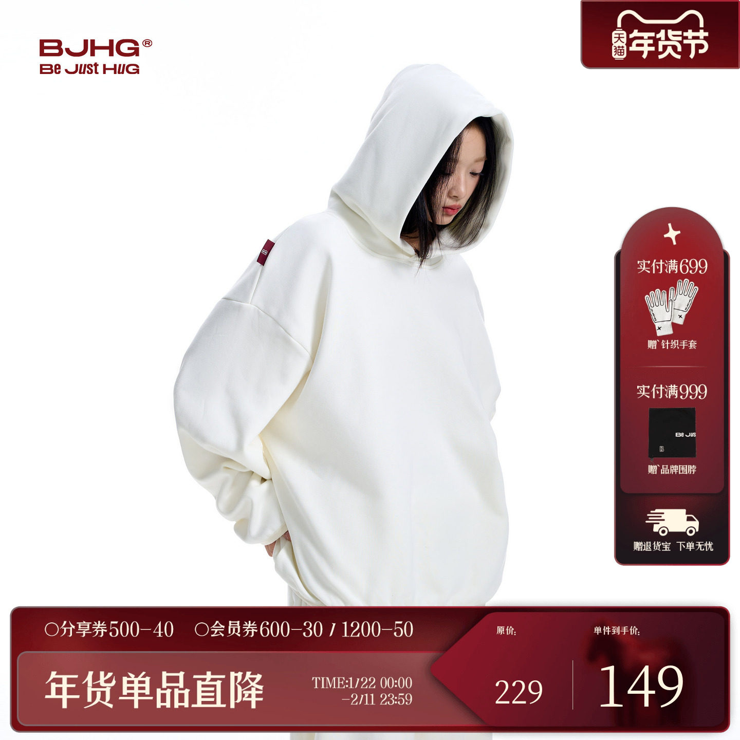 BJHG不计后果加绒连帽卫衣男款冬季新款潮牌抗菌加厚套头衫内搭女