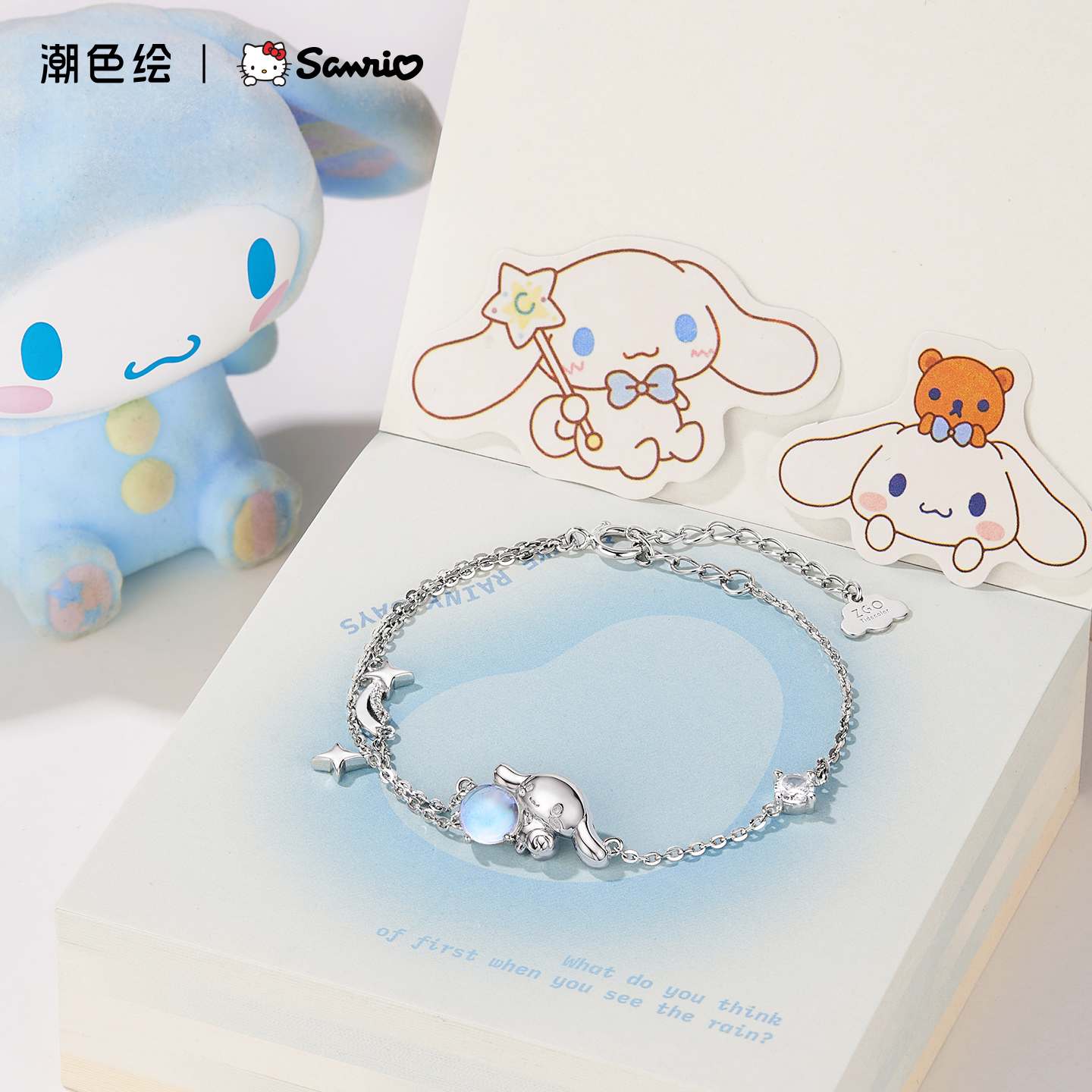 潮色绘x三丽鸥玉桂狗手链女生纯银饰轻奢小众精致送女友生日礼物