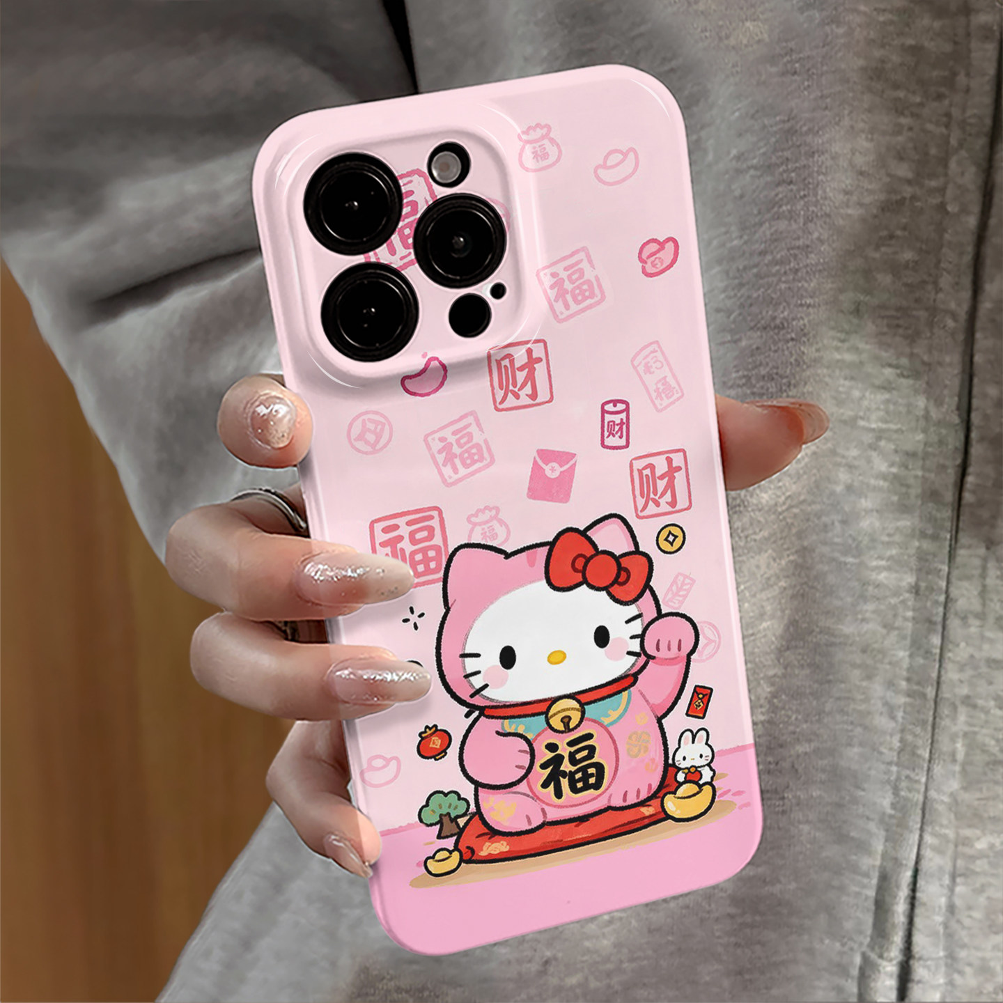 招财猫文字适用苹果16pro手机壳iPhone15promax新款13/12华为P70mate60荣耀200防摔17小米14彩银vivo可爱oppo