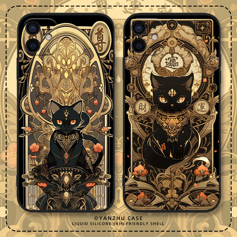 招财猫手机保护壳适用苹 果15promax猫咪华为mate60发财小米14矽胶iphone13暴富nova12全包OPPO/vivo黑猫11高