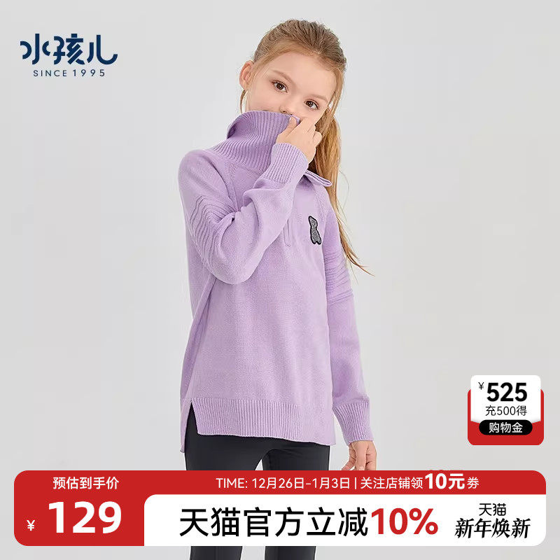水孩儿童装女童毛衣春秋装新品中长款翻领针织衫学院风女孩上衣棉