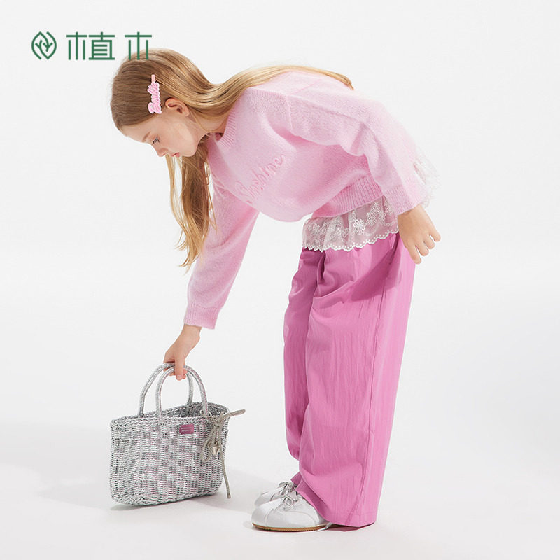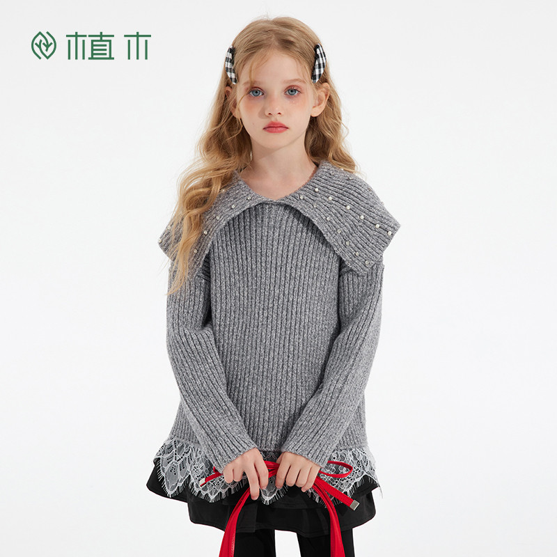 植木童装女童毛衣2025秋冬新款中大童圆领中长款针织衫儿童毛衣
