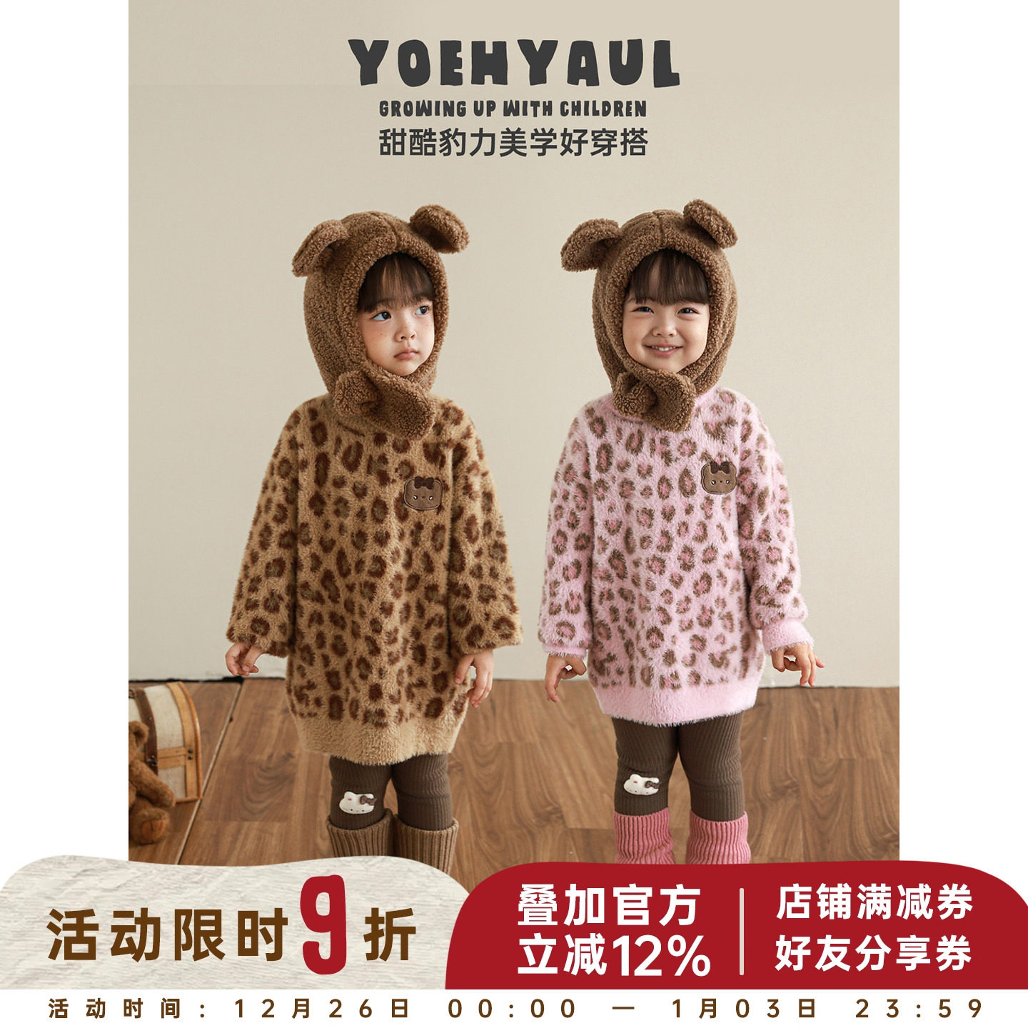 幼悠女童复古豹纹毛衣中长款秋冬萌趣可爱丰盈蓬松时髦百搭上衣潮