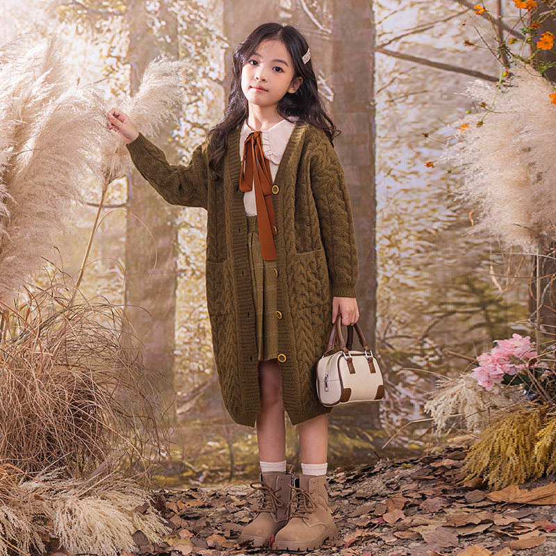 植木童装 儿童毛衣2025秋季新款中大童中长款毛衣针织衫女童毛衣
