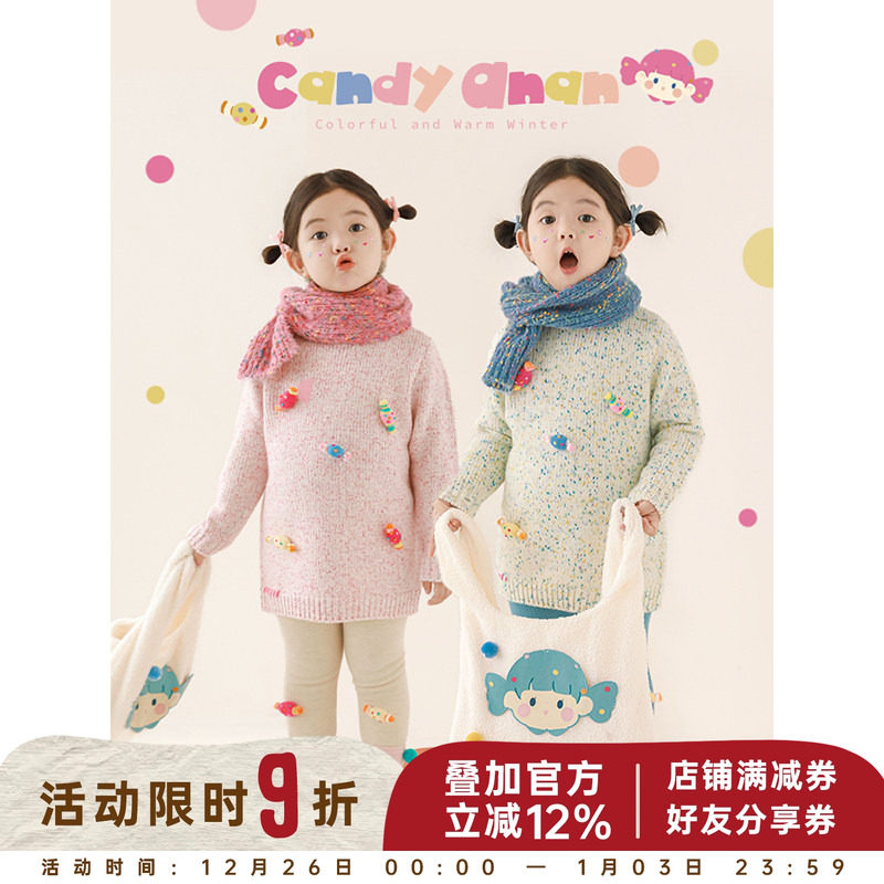 幼悠女童立体彩虹毛线糖果毛衣中长款冬季蓬松绵软保暖抗寒上衣潮