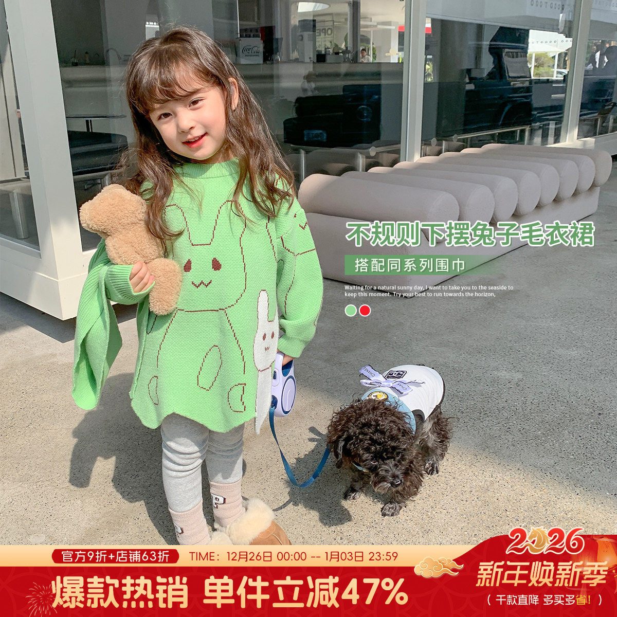 沫沫家童装女童毛衣裙儿童2022冬季新款针织毛衣宝宝中长款裙子小