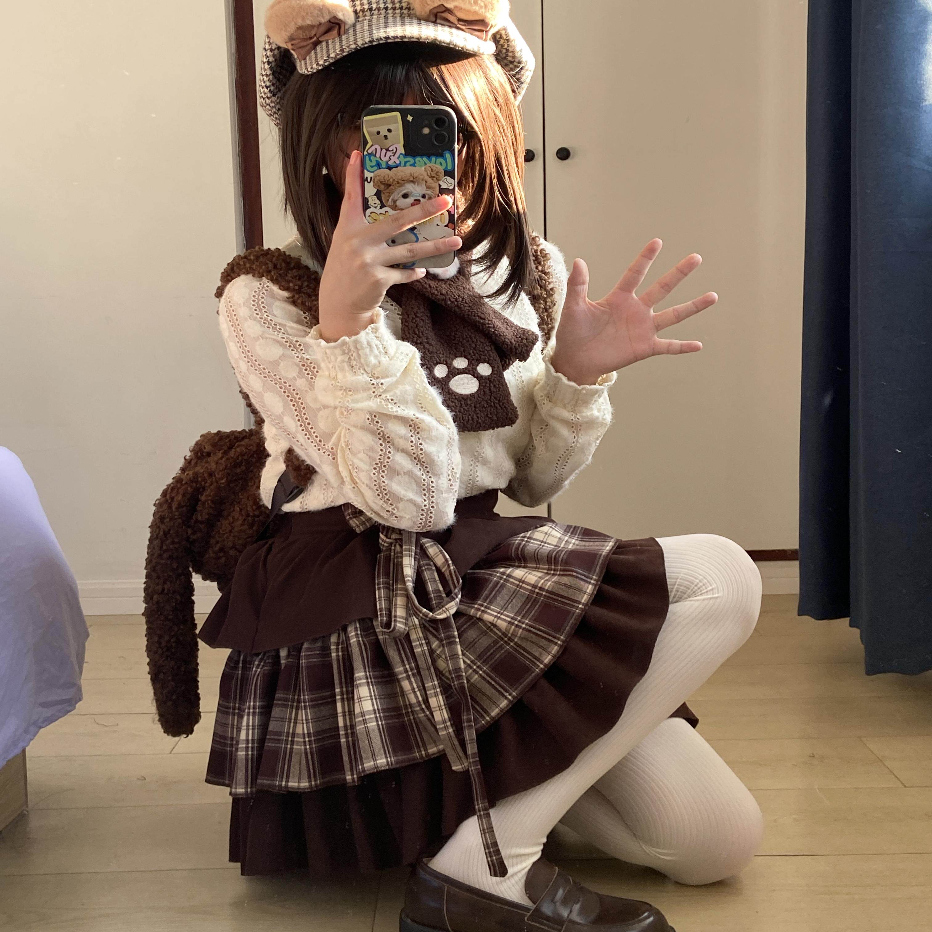 - 红格子短裙